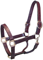 Ein Halfter ist meist ein aus Leder gefertigter Kopfzaum, der zum Führen und Anbinden eines Pferdes verwendet wird. |