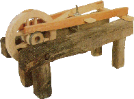 Die Schnitzbank besitzt eine Halte- und Einspannvorrichtung auf der die Speichen des Rades mit dem Zugmesser zugerichtet werden können.