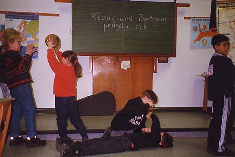 Die Geschichte wurde von einer vierten Klasse der Horstschule in Herne nachgespielt und nachgestellt. Hier werden die aufgenommenen Fotos ausgestellt.