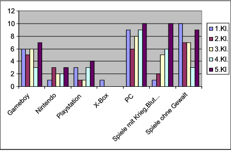 Die 5. Klasse der GS A.Schweitzer Meran hat im November 2003 in ihrer Schule eine Umfrage zu Computer-Spielen und Spielekonsolen gemacht.