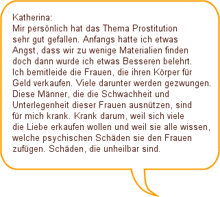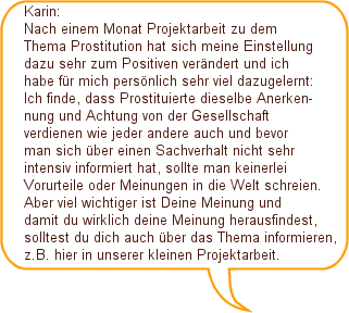 | Hallo Leute! Hier seid ihr im Projekt gelandet, in dem es um Prostitution geht. Wir hoffen, dass es euch gefällt und, dass für jeden etwas Interessantes dabei ist!