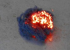 Stahlwolle und anderes Material (Papier, Holz...) wird auf einer feuerfesten Unterlage angezündet
