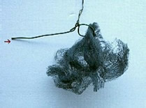 Zupfe ein wenig Stahlwolle auf und hänge diese an der einen Seite so auf, dass ein Gleichgewicht entsteht.