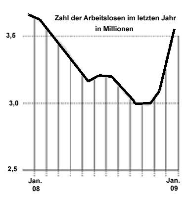 ... "Obwohl sich die Regierungen in aller Welt gegen die Wirtschaftskatastrophe stemmen und auch Berlin milliardenschwere Konjunkturhilfen beschließt, ist die Finanzkrise da angekommen, wo die Menschen sie unmittelbar spüren und wo es jeden treffen kann: am Arbeitsmarkt."...