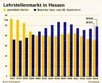 Jährlich 2000 neue Ausbildungsplätze und 1500 geförderte Betriebspraktika sollen in Hessen bis 2006 entstehen.