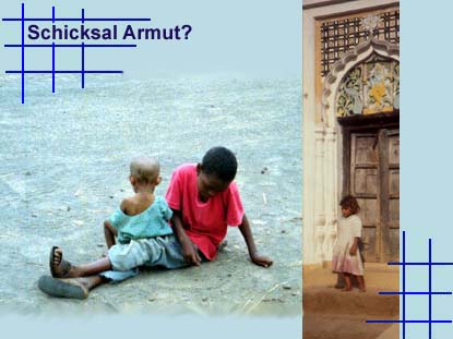 "Wir selbst haben keine Arbeit, leben von der Sozialhilfe und können uns daher keinen Urlaub mehr leisten! Sollen die "Schwarzen" doch bleiben, wo sie sind und zusehen, wie sie sich selbst helfen! Dies erst recht, wenn, wie die Medien berichten, sich die Staatslenker in den armen Ländern die Taschen voll stopfen! " So und ähnlich könnte in einem Industrieland gedacht werden. Zu fragen bleibt aber u.a. folgendes: