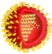 Die Grippe wird durch Influenza-Viren der Typen A, B und C hervorgerufen. Viren des Typs A zeigen besonders häufig Veränderungen ihrer Antigenstruktur, die in erster Linie auf Veränderungen zweier Eiweiße (Hämagglutinin und Neuraminidase), die sich in der Hülle des Virus befinden, hervorgerufen werden. Sie sind für das epi- bzw. pandemische Auftreten der Influenza verantwortlich, während Viren der Typen B und C eher einzelne Erkrankungen bedingen. |