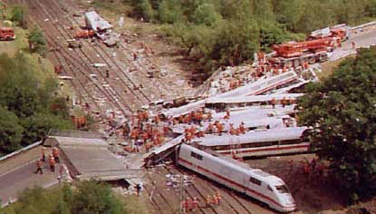 Beim Unfall des ICE "Wilhelm Conrad Röntgen" am 3. Juni 1998 kamen 101 Fahrgäste ums Leben, 105 wurden zum Teil schwer verletzt. An Schadensersatz hat die Bahn bis zum Jahr 2001 rund 42 Millionen DM gezahlt. Und auch die Materialschäden gehen in die Millionen.