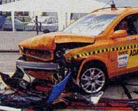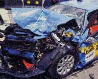 VW GOLF. Trotz des völlig zerstörten Vorbaus bleibt die Fahrgastzelle weigenhend intakt. Auch der Fahrer hätte diesen Crash überlebt.