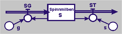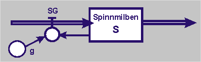 Das Wachstum der „Spinnmilben“ (S) ist über die Geburtenzahl positiv rückgekoppelt.