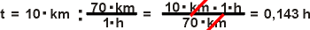 Wir nutzen zur Berechnung der Zeit t die umgestellte Formel der Geschwindigkeit