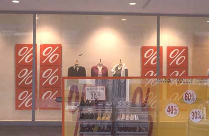• Wenn ihr in einer Einkaufstraße bummelt, dann begegnet euch ebenfalls recht häufig das Zeichen "%". Testet einmal, wie häufig dies auf einem Bummel von einer halben Stunde der Fall ist.