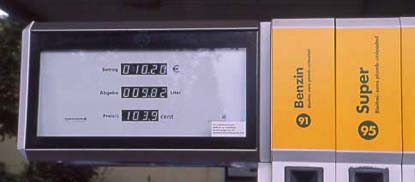 Die Automaten an Tankstellen zeigen gleichzeitig die gezapfte Menge und die dafür zu zahlenden Kosten an.