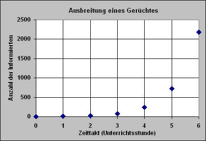 Die Zahl der Informierten nimmt dadurch zu, dass alle bereits Informierten die Nachricht an w Personen weitersagen. Je mehr Informierte es also gibt, desto mehr Jugendliche gibt es, die die Nachricht weitersagen. Aber auch die Zahl derer steigt, die die Nachricht bereits kennen und sie dann nicht weitergeben. Und: Je mehr bereits informiert sind, desto mehr kennen bereits die Nachricht. |
