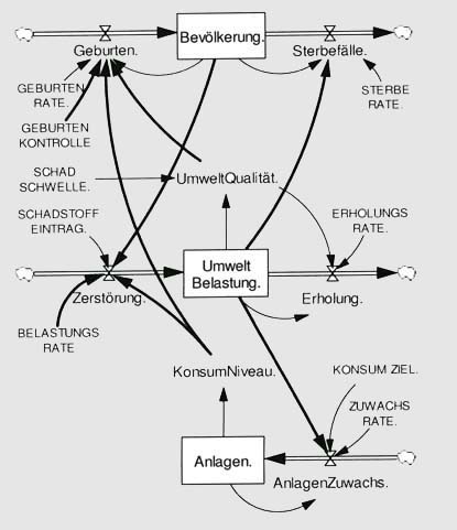Hartmut Bossel skizziert in seinem Buch: "Systeme, Dynamik, Simulation: Modellbildung, Analyse und Simulation komplexer Systeme" (Verlag: Books on Demand GmbH; 2004) ein Weltmodell: Miniwelt.