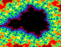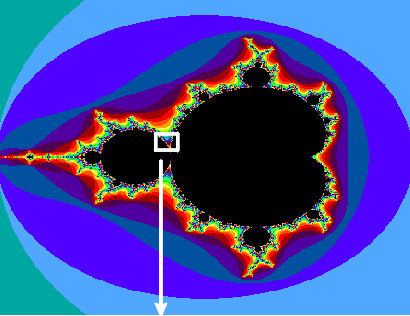 Die Bilder zeigen neben einer Fülle von faszinierenden Formen auch eine andere Regelmäßigkeit: Immer wieder taucht u.a. eine Kopie der Mandelbrot-Menge selbst auf.