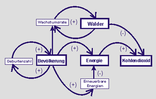 Funktion sehen, umso stärker wird ihr Wunsch, mehr Wälder anzupflanzen. Und: Je mehr Wälder dann im natürlichen Kreislauf des Kohlendioxids vorhanden sind, umso mehr Kohlendioxid wird abgebaut. Ein mögliches Wirkungsdiagramm kann dann wie folgt