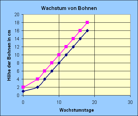Textfeld: Größenwachstum von  Bohnen in cm