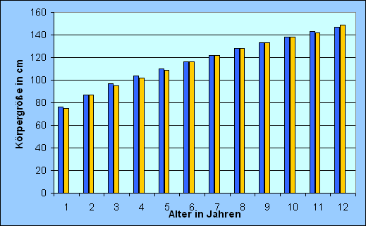 Alter in Jahren Körpergröße von Jungen in cm Körpergröße von Mädchen in cm