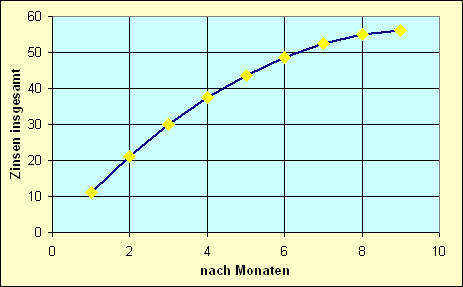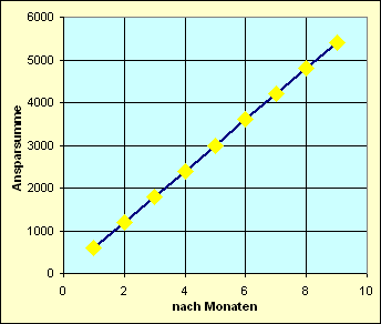 | Monat | nach ... | Einzahlung | Ansparung | Anzahl der | Einzahlung | Zinssatz | Zinsen | Zinsen insgesamt | Ansparung | |||||||||||||