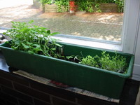 Für die Anlage des Fensterbankgartens benötigt ihr Gefäße mit Pflanzerde. Diese Gefäße können Blumentöpfe, Blumenkästen und andere Behälter aus Ton oder Kunststoff sein. Am Boden der Gefäße müssen sich Öffnungen befinden, damit überschüssiges Gießwasser abfließen kann. Die Pflanzbehälter stehen am besten auf entsprechend großen Tellern o.ä., die das Wasser auffangen können.