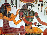 Die ägyptische Kunst diente meist dem Totenkult und der Götterverehrung. Darum befinden sich viele Bilder in den Pharaonengräbern.
