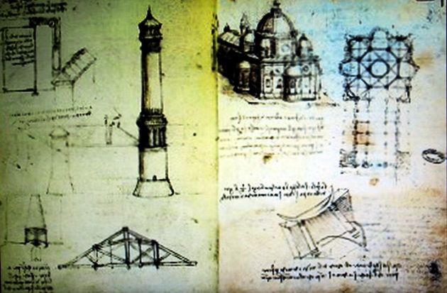 Zeichnung aus einem Notizbuch, dem Codex Atlanticus