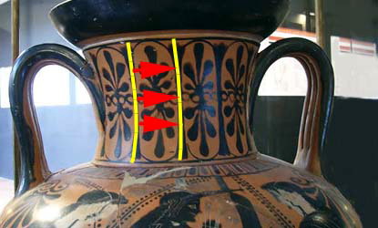 Beispiel 1: Verschiebungsvektor eingezeichnet in das Bandornament einer römischen Vase