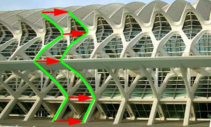 Beispiel 2: Verschiebungsvektor eingezeichnet in das Bild eines modernen Gebäudes