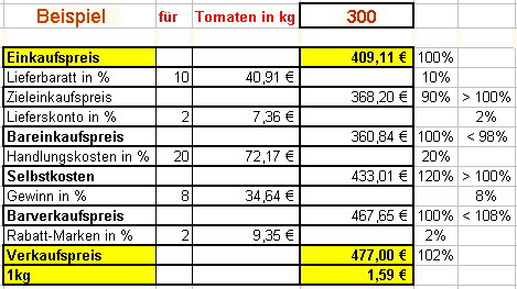 Man erhält den Zieleinkaufspreis, der gegenüber