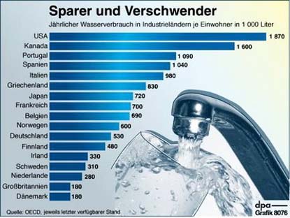 Wasserverbrauch in Europa und anderen Ländern der Erde