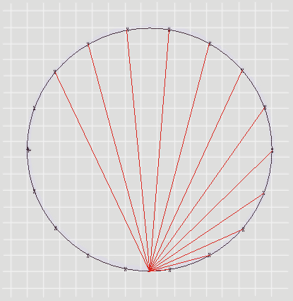 - Zeichnet eine ebensolche Figur in einen Kreis, die diametral entgegengesetzt (also oben) beginnt.