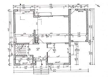 "Querschnitt" durch ein wirkliches Haus. Es ist eine Bauzeichnung.