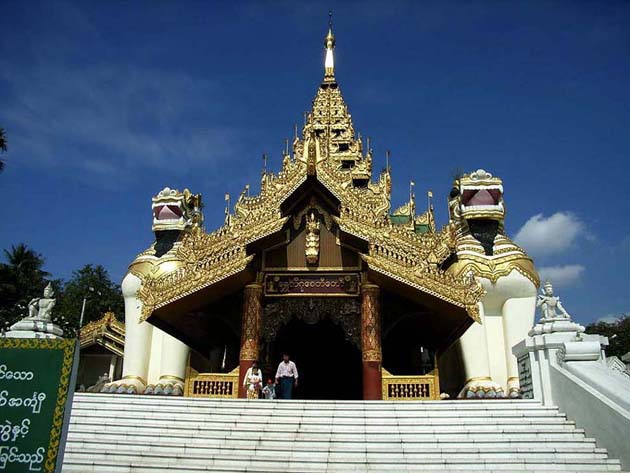 Aufgang zur Shezigon Pagode in Yangoon / Birma