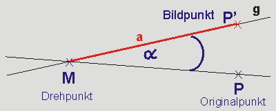• Dreht den Originalpunkt P um M um den Winkel α mit Hilfe von Zirkel und Lineal.