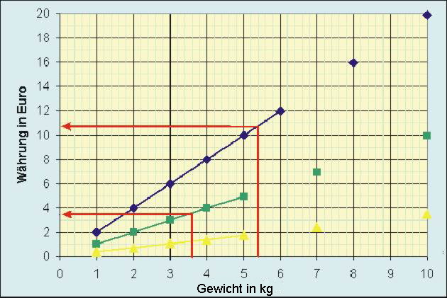 Lies in den Punkt-Liniendiagrammen so genau wie möglich ab: