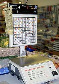 Heute muss der Einkäufer die Ware selbst auf die Waage legen, die entsprechende Taste drücken und den Preis-streifen aufkleben oder die Ware wird an der Kasse gewogen und der Preis wird automatisch verbucht.