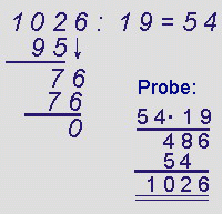 rechne 76 : 19