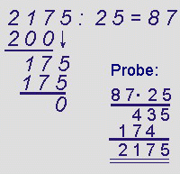 rechne 175 : 25 = 7
