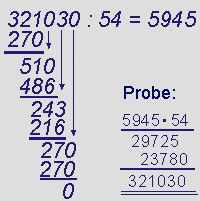 rechne 321 : 54 geht 5 mal