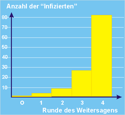 Nehmt an, dass in jeder Runde alle "infizierten"