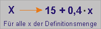 f(x) = 15 + 0,4 · x, x ε D
