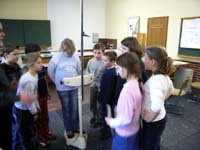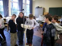 Messung des Körpergewichtes in einer Klasse 3 in Herne