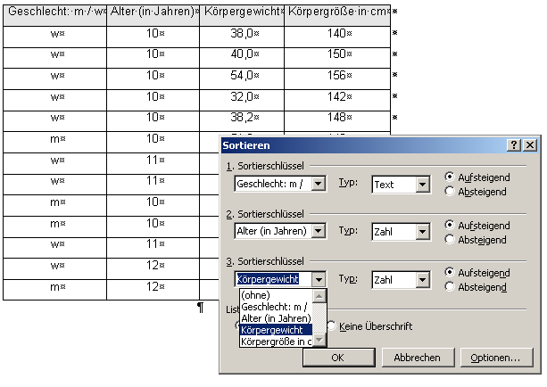 Daten zu sortieren, müsst ihr die Tabelle markieren.