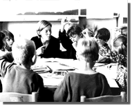 Tage beginnen im Sesselkreis; an anderen Tagen sind mehrere Kinder um