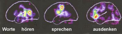 Kognitive Sach- und Sinnverhalte aktivieren und hinterlassen nach ihrer (mehrfachen) Wahr-Nehmung im Großhirn eine "breite Spur"! In Positronen-Emissions-Tomographien (PET) lässt sich zeigen, dass im Großhirn beim Hören eines Wortes große und teilweise nicht zusammenhängende Bereiche, beim Sprechen eines Wortes andere, aber wiederum große und teilweise nicht zusammenhängende Bereiche und beim Ausdenken eines Wortes wieder andere, aber wiederum große und teilweise nicht zusammenhängende Bereiche aktiviert werden.