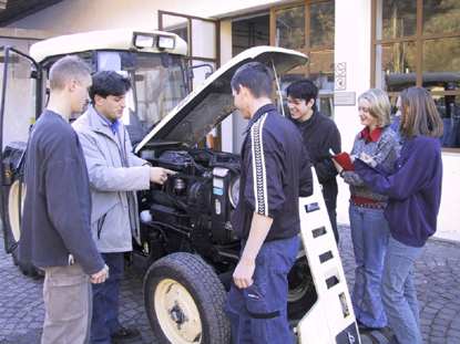 (4. und 5. Klasse) geht es um den Einsatz von technischen Hilfsmitteln in der Landwirtschaft, vom einfachen Werkzeug bis zu High-Tech-Maschinen, im Bereich der Produktion (Bearbeitung des Bodens, Förderung des Wachstums und Pflege der Kulturpflanzen, Erntetechnik) und im Bereich der Verarbeitung von landwirtschaftlichen Erzeugnissen. Somit steht dieses Fach im Zusammenhang mit den Fächern Pflanzenbau, Tierzucht, Agrarindustrielehre und Agrarwirtschaft, Vermessungskunde und Bauzeichnen. |
