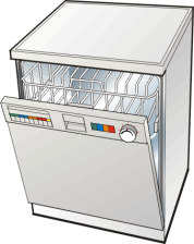 Die Geschirrspülmaschine reinigt Gläser, Teller und Tassen, Besteck und Töpfe von den Essensresten.