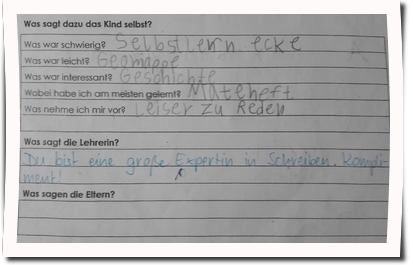 Dabei macht sich jedes Kind anhand seines Arbeitsplanes Gedanken über die vergangene Woche.