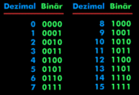 0 = 0 1 = 1 2 = 10 3 = 11 4 = 100 5 = 101 6 = 110 7 = 111 8 = 1000 9 = 1001 10 = 1010 |
